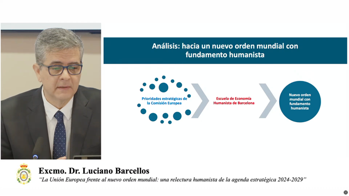 Frente a este escenario, la Comisión Europea ha definido siete prioridades estratégicas para el período 2024–2029, orientadas a fortalecer la prosperidad sostenible, la democracia y el liderazgo global. El estudio del Dr. Barcellos-Paula subraya la necesidad de reconsiderar el papel global de la Unión desde una perspectiva ética centrada en la persona, tomando como referencia el marco conceptual de la Escuela de Economía Humanista de Barcelona. Esta escuela, fundada por Jaime Gil-Aluja en 2021 e inspirada en los aportes de Arnold Kaufmann y Jacques Pezé, propone un enfoque económico basado en la plenitud intelectual, la promoción mutua, la libertad de compromiso y la posibilidad universal de desarrollo. A partir de estos principios, la investigación vincula herramientas metodológicas como la Teoría de los Efectos Olvidados, la Teoría de Afinidades y la Lógica Difusa aplicada con los ejes estratégicos definidos por la Comisión Europea.