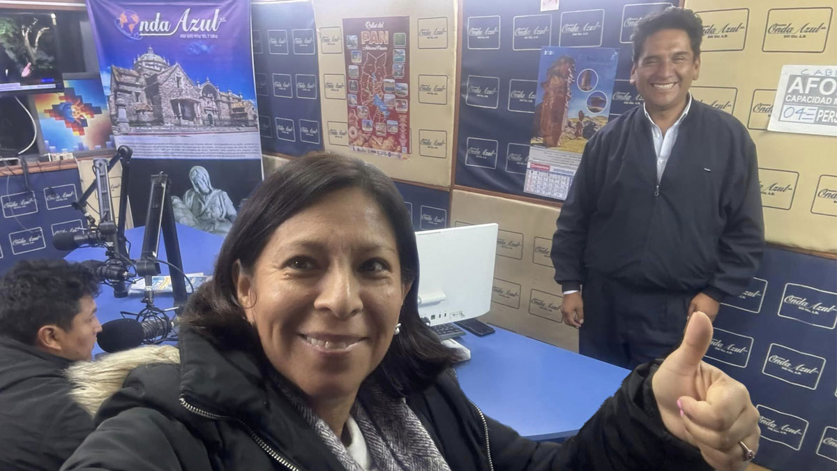 La profesora Julianna Ramirez Lozano, Directora del HUB de Investigación y Desarrollo y gestora del programa «Mujer, que tu negocio crezca más», ofreció una entrevista el 28 de noviembre al programa Participación Ciudadana de la cadena radial Onda Azul, en la ciudad de Puno.